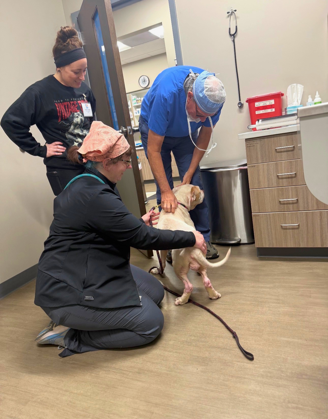 Downy weighed just 46 pounds when she began her journey with Saving Souls Pet Alliance and was immediately placed on a starvation protocol. At her first veterinary visit, the Animal Medical Center of Wyoming discovered she was severely anemic, septic, and suffering from pyometra—a life-threatening uterine infection.