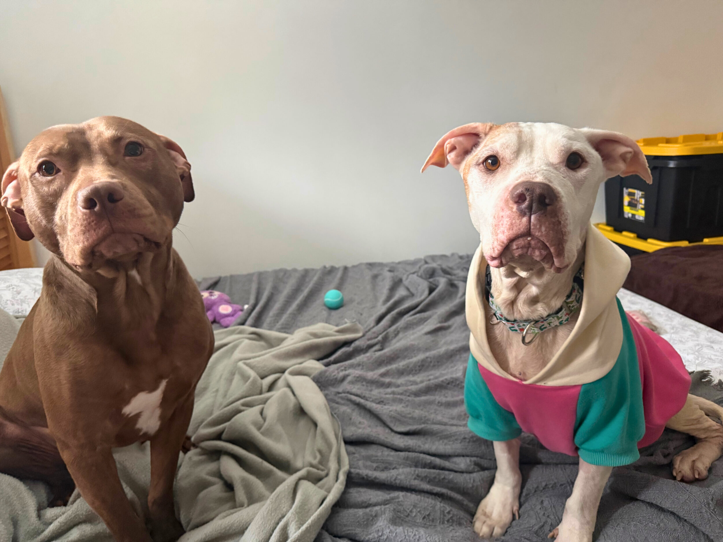 In just a few short weeks, Downy began to transform. She gained weight, her skin improved, and her spirit started to shine. Her foster family has fallen in love with her—building her a wardrobe of her own and soaking up every snuggle, especially with her foster brother.